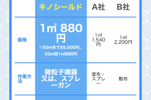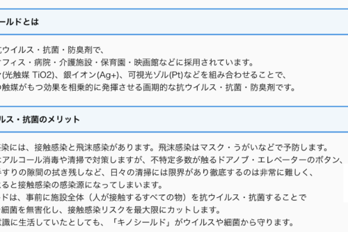 【キノシールド】は、日本食品分析センターの安全性試験を実施し、公的に安全性を確認しています。酸化チタンは食べ物にも使用され、銀・プラチナは、食品添加物として許可されています。また、コート剤はアルコール不使用のため、お子さんや年配方が利用される施設にもご安心頂けます。