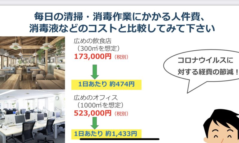 コロナウイルス対策として毎日の作業・消毒作業には時間もコストもかなりかかります。
