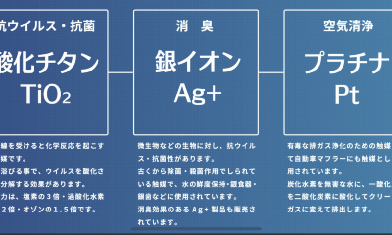 こちらの組み合わせによりキノシールドは、抗ウィルス・消臭効果・空気清浄効果が施工後1年間保たれます。