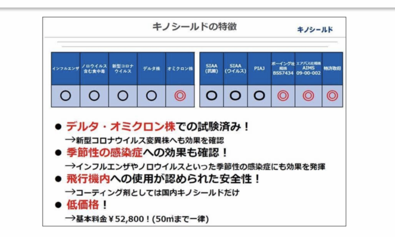 キノシールドは抗ウイルス・抗菌対策に関してもしっかりと接触感染から身を守つてくれます。