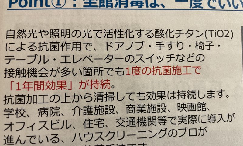 キノシールドは、施工後ずっと抗菌が持続しているので1度の抗菌施工で1年間効果が持続します。