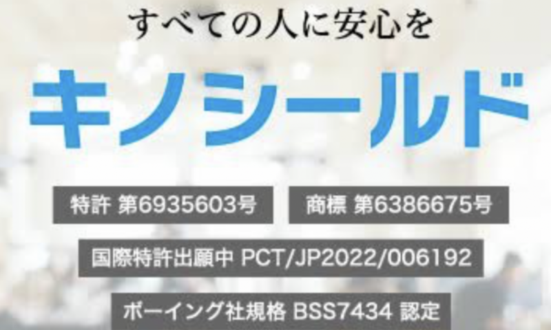キノシールドでは、抗ウイルス・抗菌対策としてたくさんの特許申請を出して認定もしっかりと頂いております。
