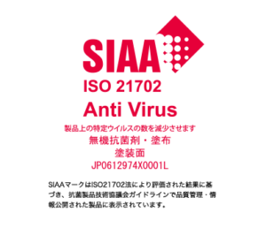 「抗ウイルス」マーク認証を取得 注意事項:抗ウイルス加工は、病気の治療や予防を目的とするものではありません。SIAAの安全性基準に適合しています。